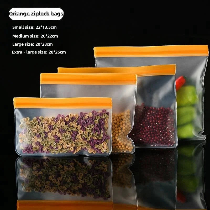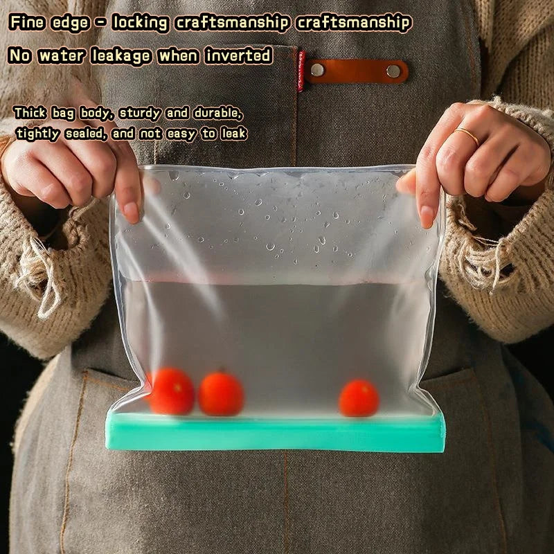 Reusable Silicone Food Storage Kitchen Fruit Vegetable Bag Fresh-Keeping Bag Sealed Freezer Bag Leakproof Food Ziplock Bag Food